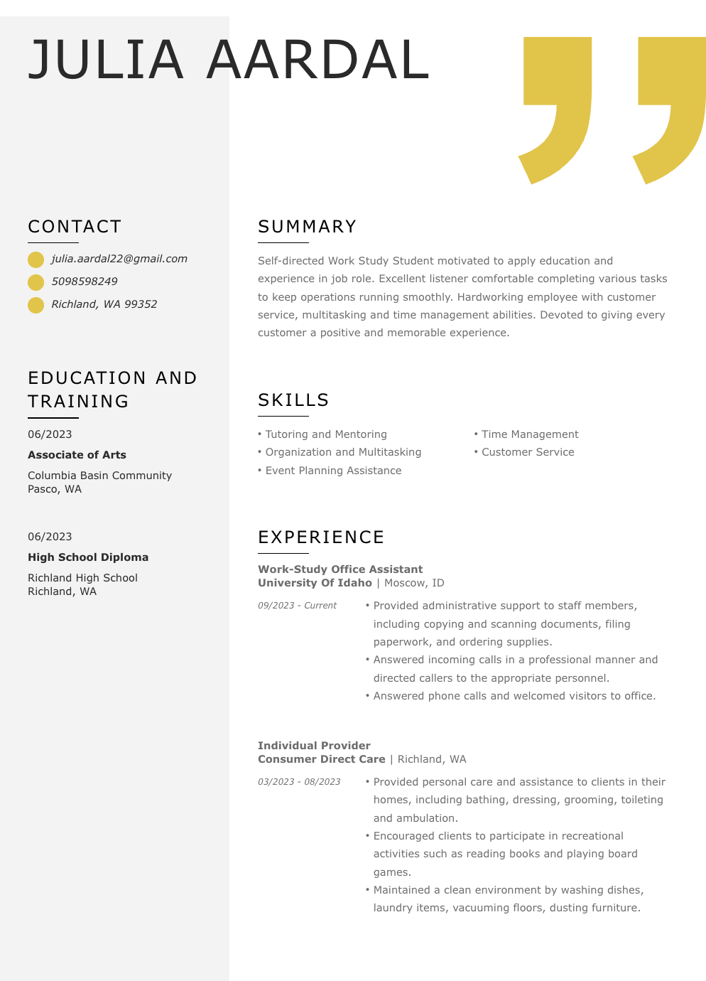 My name is Julia Aardal! I have my Associate degree from Columbia Basin Community College and now working towards my Bachelor's degree in Elementary Education with a minor in Mathematics at the University of Idaho. I am continuing to work towards my degree to be able to teach 4th-grade math! 4th Graders have a unique passion, and creativity, and are well-motivated! This is what I am looking forward to in teaching 4th grade and am excited to do so!